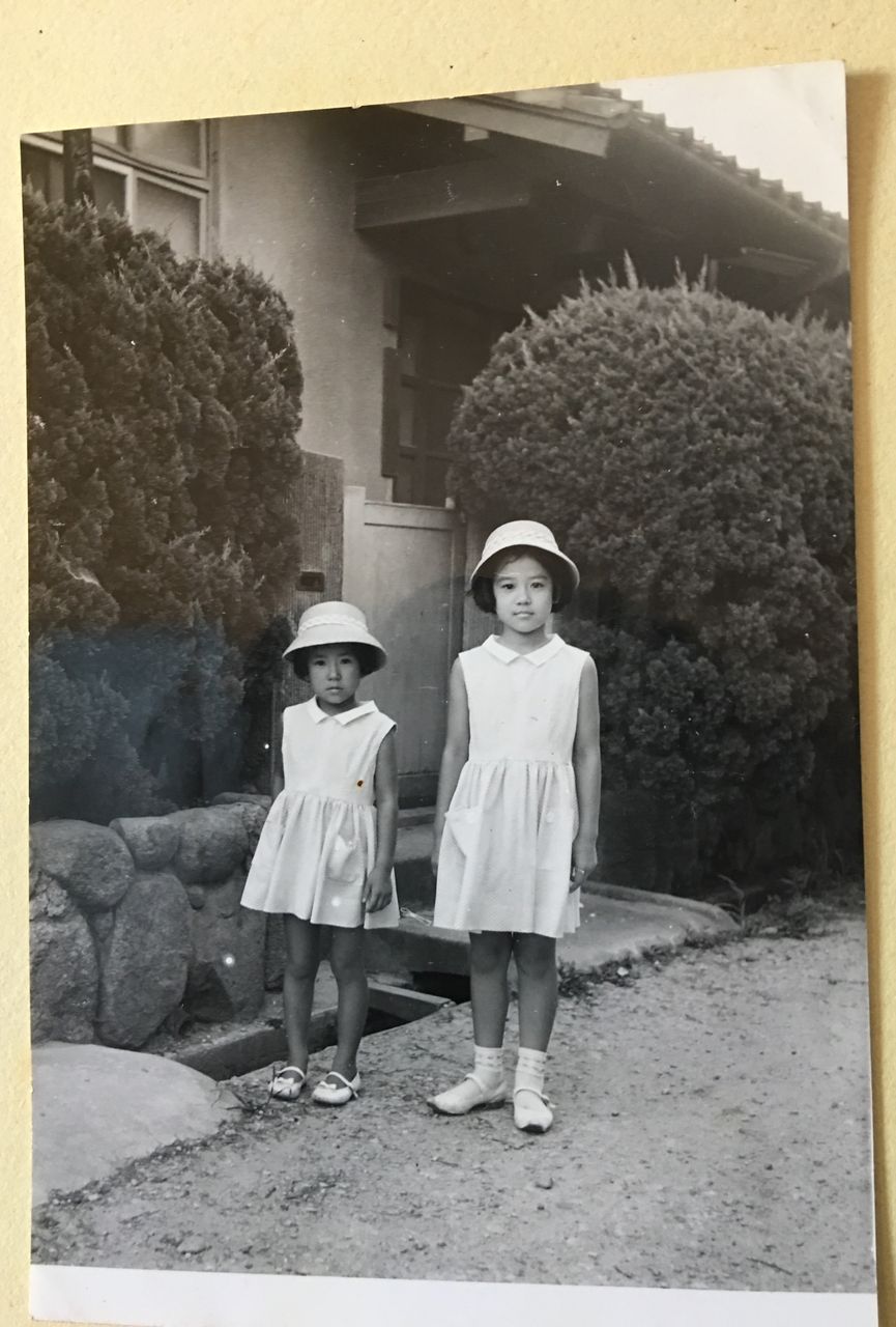 (まだノースリーブが着られた8歳くらいの頃。子どもの頃、お出かけ着はほとんど母の手作りだった。妹お揃いのワンピースはよく作ってくれた)