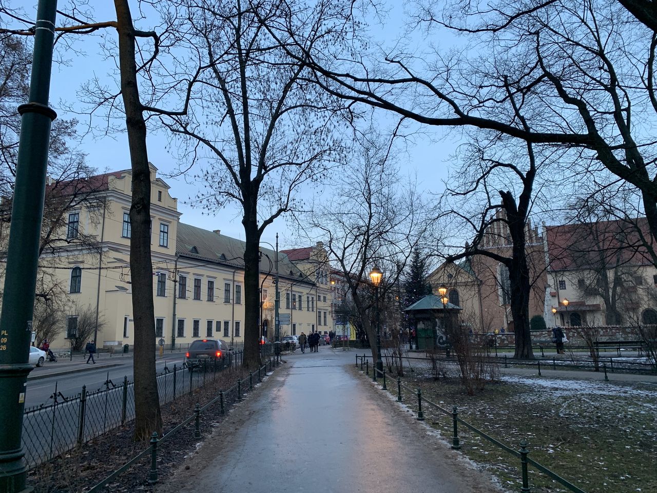 ポーランドの多くの都市は第二次世界大戦で、ドイツとソ連に完膚なきまでに破壊されたのですが、クラクフはナチスが司令本部を置いたことから、14、15世紀の建造物が残っています。とくに街の象徴ともいえるヴァヴェル城は、ナチスがまさに指令本部を構えたこともあって、ヴィスワ川のほとりに優美な姿を残しています。ホテルはそのすぐ近くにあり、また中央広場まで徒歩15分という好立地でした。