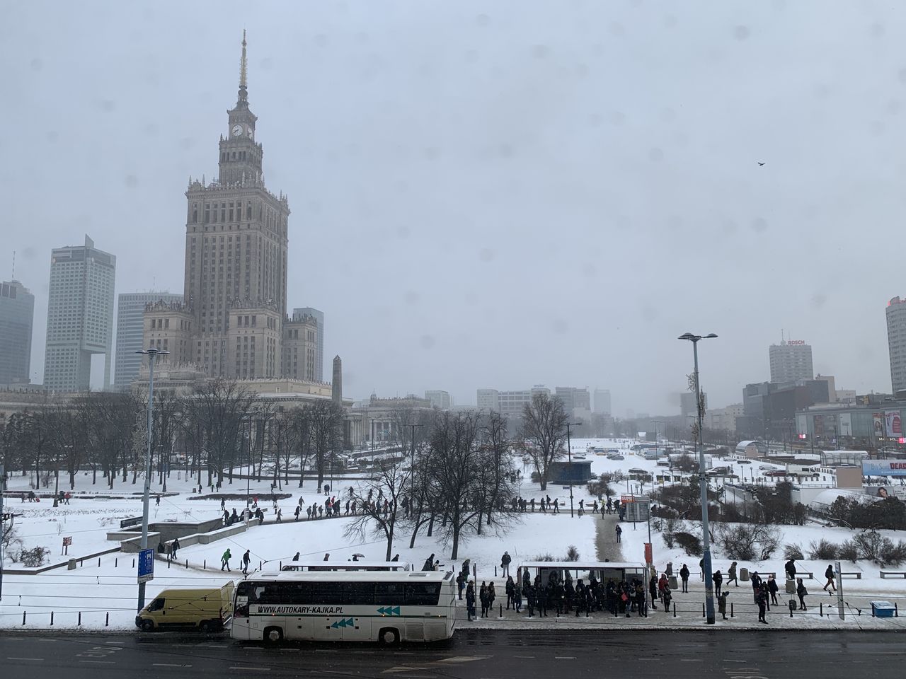 到着後に一休みする間もおかずに、中央広場まで観光に出かけました。今ではほとんど残っていない城壁に囲まれた中央広場周辺は、クラクフの経済の中心だったことがしのばれる場所です。広場には織物取引所、聖マリア教会、旧市庁舎の塔などが立っていて、真冬にもかかわらず大勢の観光客でたいへんにぎわっていました。ホテルのレセプションのお兄さんが「何千人も歩いている」と言ったときには、なんておおげさなと思ったけれど、いや、ほんとそれくらいの人がそぞろ歩いていましたね。